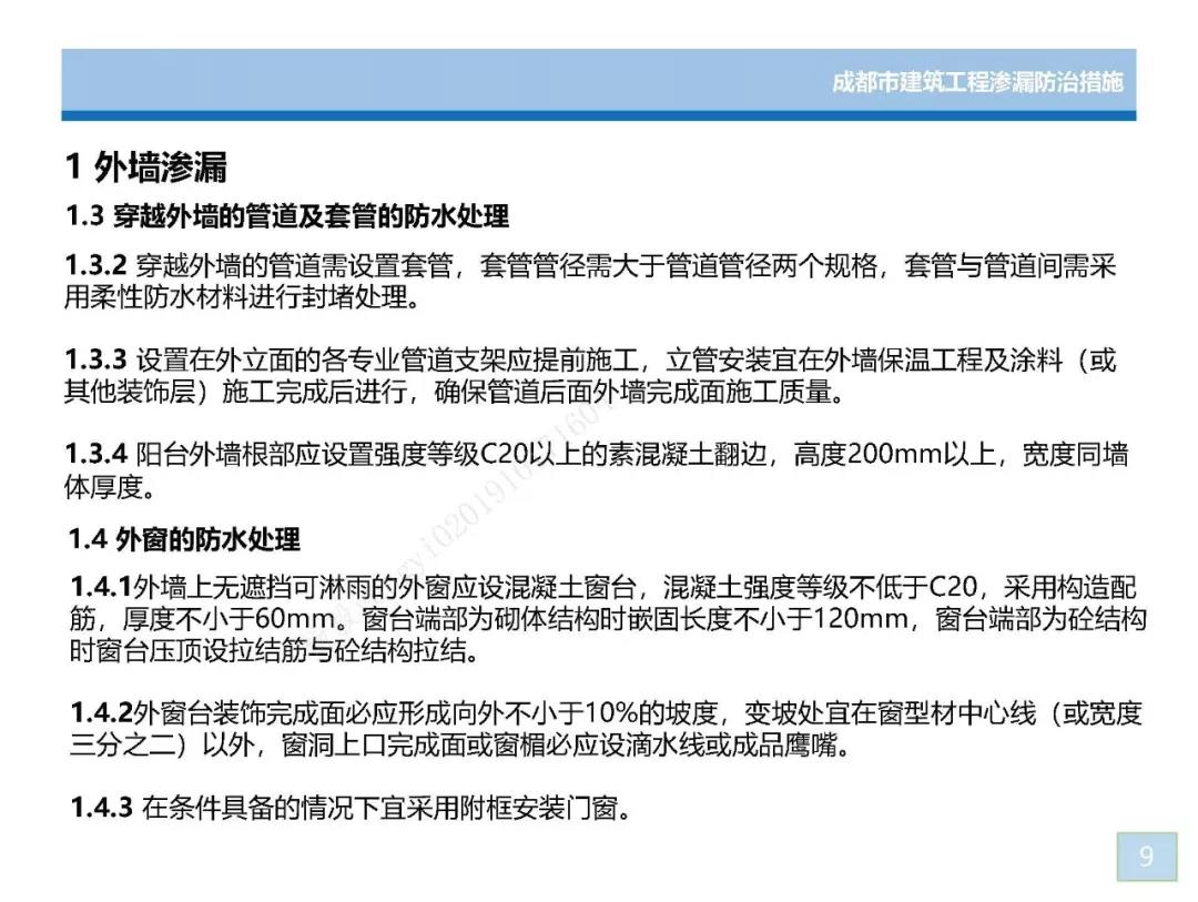《成都市建筑工程滲漏防治措施》