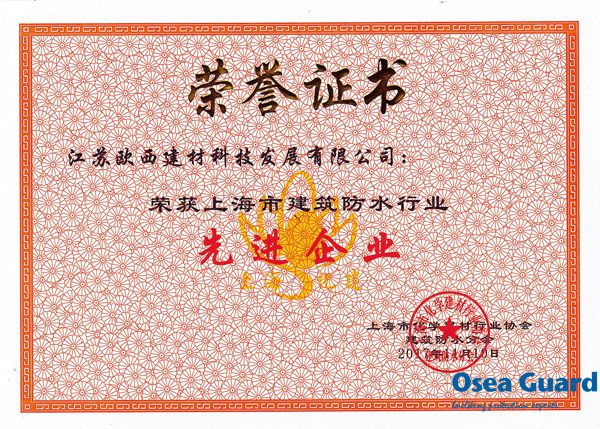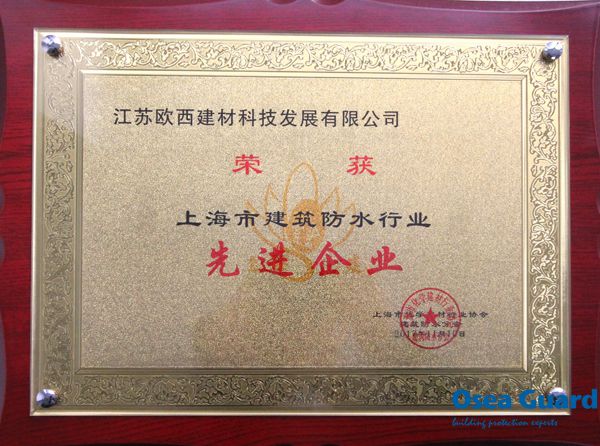 歐西建科獲上海市建筑防水行業(yè)“先進(jìn)企業(yè)”榮譽(yù)稱號
