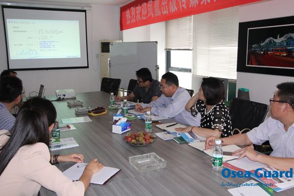 考察組一行觀看了企業宣傳片,并聽取了技術服務部經理趙德君關于企業概況、產品研發、工程施工等方面的情況介紹。在認真聽取情況介紹后,鳳凰傳媒集團工程部經理陶貴寧對歐西近年來的發展給予了高度評價,并就如何加強鳳凰傳媒集團與歐西深入合作進行了交流、探討。