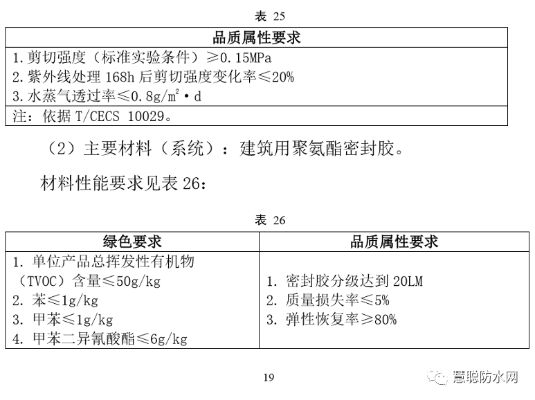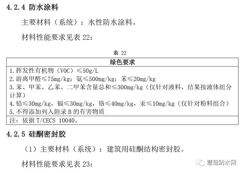 《基本要求》規(guī)定,防水卷材防水涂料的性能應(yīng)分別符合團(tuán)體標(biāo)準(zhǔn)T/CECS 10038-2019《綠色建材評價 防水卷材》和T/CECS 10040-2019《綠色建材評價 防水涂料》的規(guī)定。優(yōu)異的耐久性和環(huán)保性是產(chǎn)品入選的必備條件。