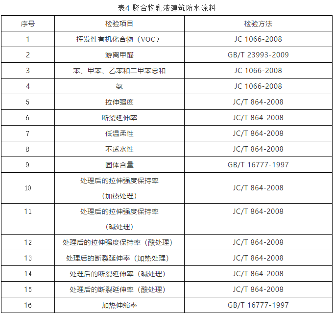 3 判定規(guī)則 3.1依據(jù)標(biāo)準(zhǔn) GB/T 19250-2013 聚氨酯防水涂料 GB/T 23445-2009 聚合物水泥防水涂料 JC/T 408-2005 水乳型瀝青防水涂料 JC/T 864-2008 聚合物乳液建筑防水涂料 JC 1066-2008 建筑防水涂料中有害物質(zhì)限量 現(xiàn)行有效的企業(yè)標(biāo)準(zhǔn)、團(tuán)體標(biāo)準(zhǔn)、地方標(biāo)準(zhǔn)及產(chǎn)品明示質(zhì)量要求 3.2判定原則 經(jīng)檢驗(yàn),檢驗(yàn)項(xiàng)目全部合格,判定為被抽查產(chǎn)品合格;檢驗(yàn)項(xiàng)目中任一項(xiàng)或一項(xiàng)以上不合格,判定為被抽查產(chǎn)品不合格。 若被檢產(chǎn)品明示的質(zhì)量要求高于本細(xì)則中檢驗(yàn)項(xiàng)目依據(jù)的標(biāo)準(zhǔn)要求時(shí),應(yīng)按被檢產(chǎn)品明示的質(zhì)量要求判定。 若被檢產(chǎn)品明示的質(zhì)量要求低于本細(xì)則中檢驗(yàn)項(xiàng)目依據(jù)的強(qiáng)制性標(biāo)準(zhǔn)要求時(shí),應(yīng)按照強(qiáng)制性標(biāo)準(zhǔn)要求判定。 若被檢產(chǎn)品明示的質(zhì)量要求低于或包含本細(xì)則中檢驗(yàn)項(xiàng)目依據(jù)的推薦性標(biāo)準(zhǔn)要求時(shí),應(yīng)以被檢產(chǎn)品明示的質(zhì)量要求判定。 若被檢產(chǎn)品明示的質(zhì)量要求缺少本細(xì)則中檢驗(yàn)項(xiàng)目依據(jù)的強(qiáng)制性標(biāo)準(zhǔn)要求時(shí),應(yīng)按照強(qiáng)制性標(biāo)準(zhǔn)要求判定。 若被檢產(chǎn)品明示的質(zhì)量要求缺少本細(xì)則中檢驗(yàn)項(xiàng)目依據(jù)的推薦性標(biāo)準(zhǔn)要求時(shí),該項(xiàng)目不參與判定。 (本文來(lái)自市場(chǎng)監(jiān)管總局網(wǎng)站) |