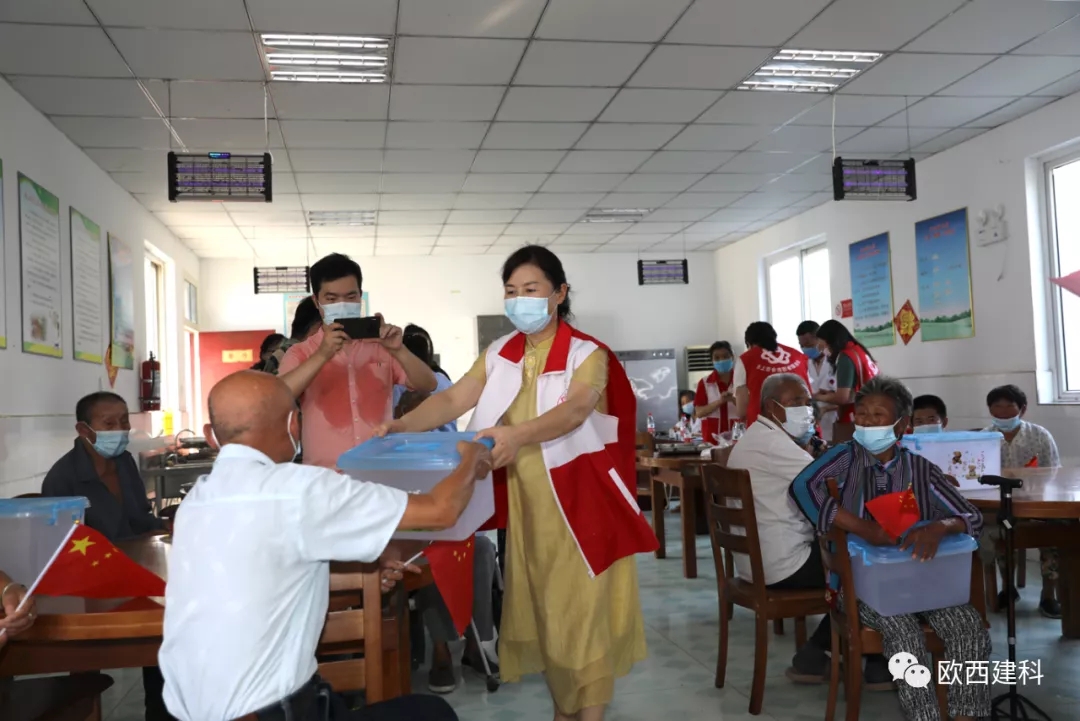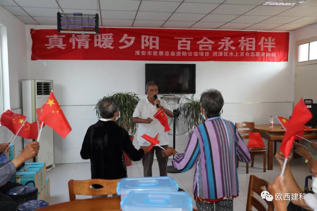 金風送爽,丹桂飄香,國慶將至,普天同慶。近日,江蘇歐西建材科技發展有限公司攜手淮安市洪澤區水上百合志愿者協會、區發改委黨總支、區朱壩街道社區衛生服務中心及愛心志愿者們前往朱壩街道敬老院看望慰問生活在這里的老人,開展了“敬愛老人 奉獻愛心”慰問活動。