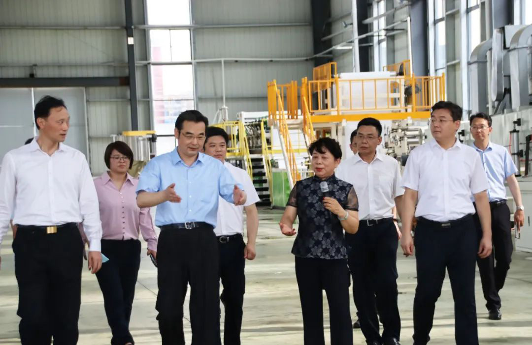 7月6日下午,淮安市市長史志軍、副市長王向紅一行在洪澤區區委書記張沖林、區長張灝、常務副區長宋月霞、經濟開發區黨工委書記朱峰、副區長陸珉、經濟開發區管委會主任劉興春等領導的陪同下到我司考察指導,總經理楊桂玲接待并陪同考察。