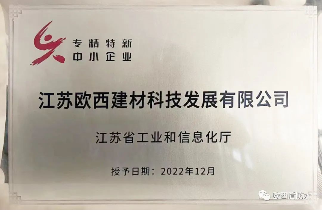 此次獲評(píng)為江蘇省專(zhuān)精特新“小巨人”企業(yè),是對(duì)歐西盾防水發(fā)展成果的重要肯定,有利于進(jìn)一步提升歐西盾防水的行業(yè)地位和市場(chǎng)競(jìng)爭(zhēng)力。未來(lái),歐西盾防水將繼續(xù)秉承專(zhuān)精特新“小巨人”企業(yè)的專(zhuān)業(yè)化、精細(xì)化、特色化、新穎化精神,勇立潮頭、勤修內(nèi)功,為國(guó)內(nèi)防水行業(yè)的高質(zhì)量發(fā)展提供歐西盾動(dòng)能。