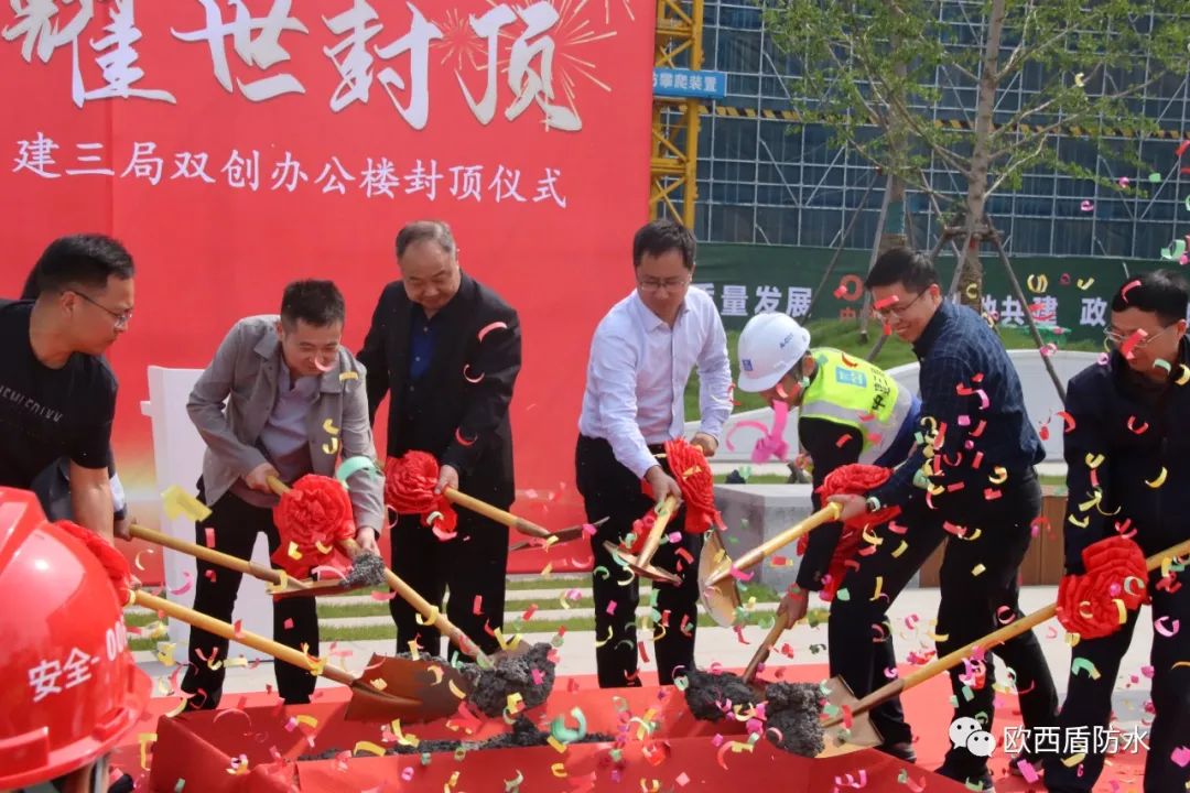 4月27日,由江蘇歐西盾防水工程技術有限公司參建的中電光谷洪澤生態經濟示范園雙創辦公樓順利封頂,公司領導及相關項目施工負責人參加了此次封頂典禮。