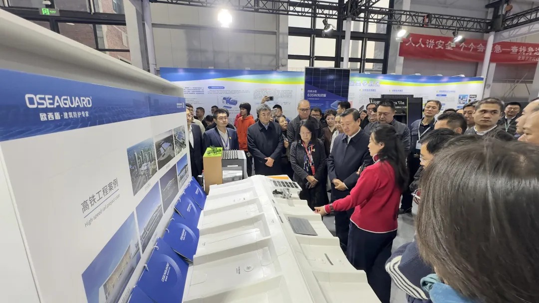 展會期間,住房和城鄉建設部黨組書記、部長倪虹,及相關領導一行蒞臨歐西盾展位,參觀了品牌核心防水產品TPS鋼塑一體瓦金屬屋面防水系統模型。