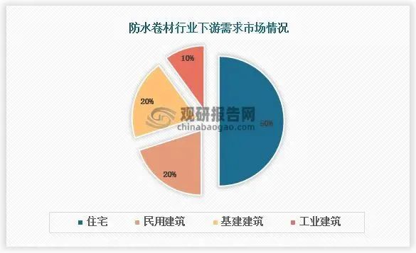 根據觀研報告網發布的《中國防水卷材行業發展趨勢分析與未來投資預測報告(2023-2030年)》顯示,我國防水卷材市場客戶所屬行業分布與行業對防水需求的水平強相關。防水卷材的彈性和耐候性好,但拼接工藝難度高,細部處理復雜,因此并不適合家庭防水的小面積施工,普遍適用于屋面、地下室、廚衛、外墻等大面積施工,目前住宅是防水卷材市場最主要的方向。防水卷材在住宅領域的客戶占比達到50%,其次民用、基建領域主要用于高速公路和高速鐵路的橋梁、隧道、城市道路橋梁、地下管廊和地下空間等市政工程,地下鐵道等交通工程,引水渠、水庫、壩體、水利發電站及水處理等水利工程,這類客戶數量占比達到40%,工業領域的客戶數量占比達到10%。