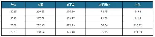 各部位防水卷材市場空間測算(單位:億元)