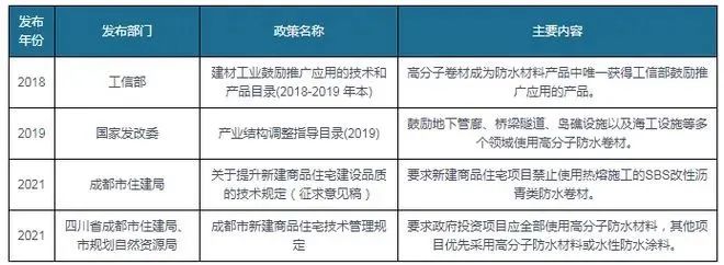 我國高分子防水卷材行業重點政策梳理